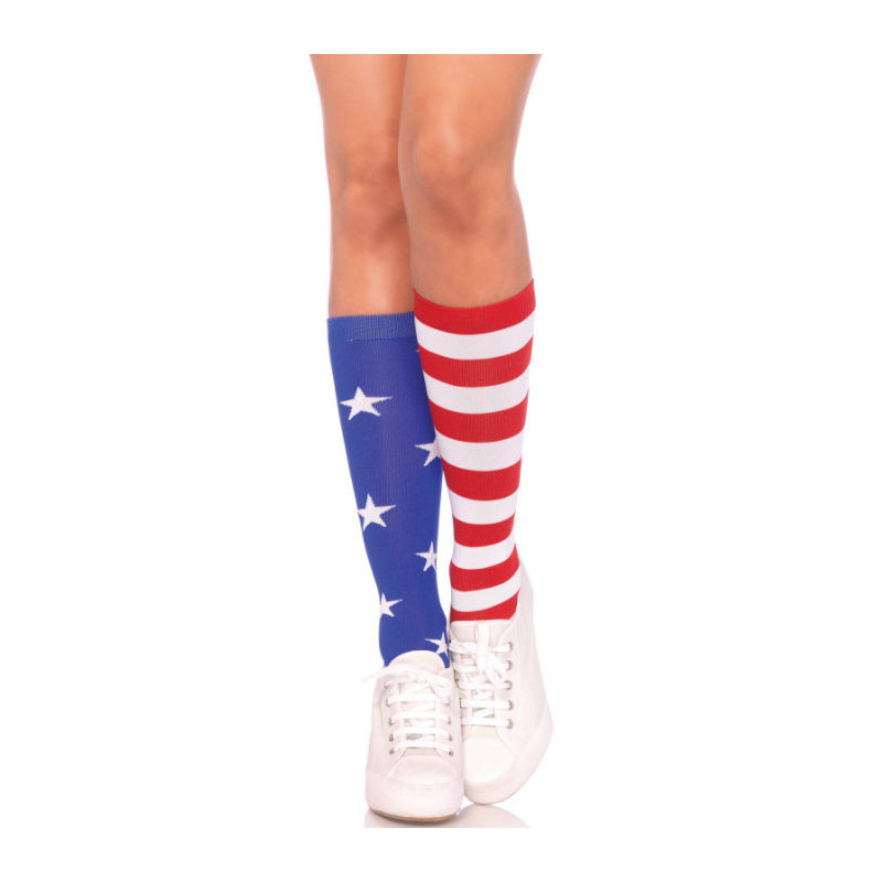 Calcetines hasta la rodilla con rayas y estrellas además de una banda el‡astica