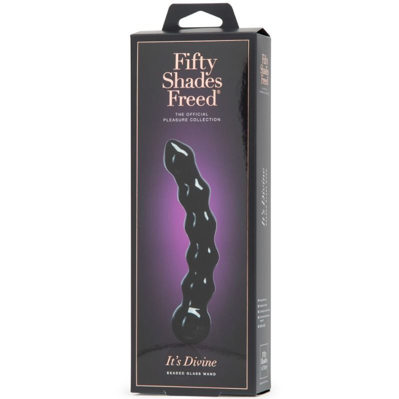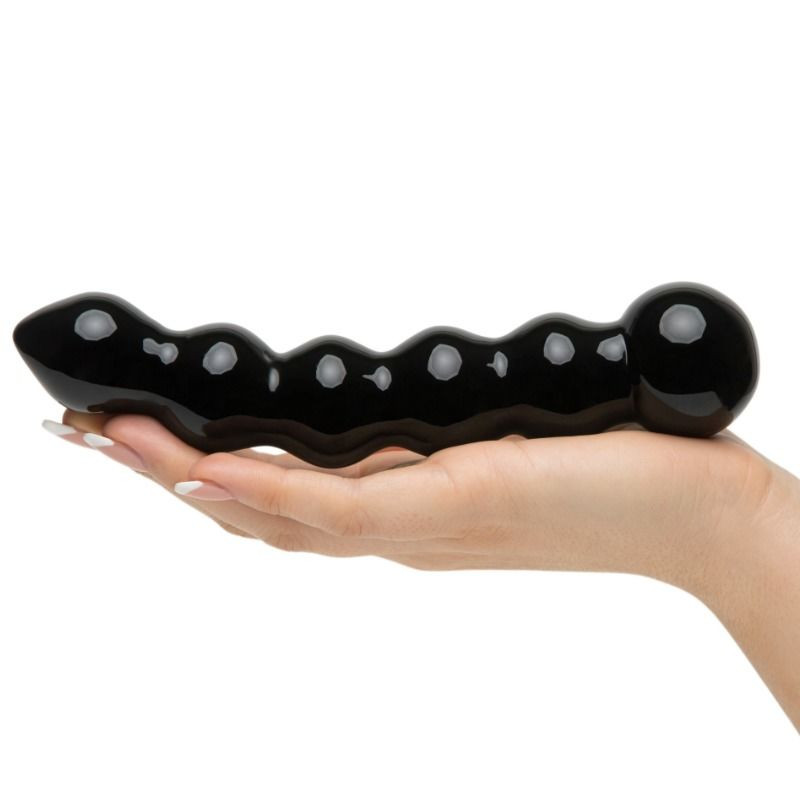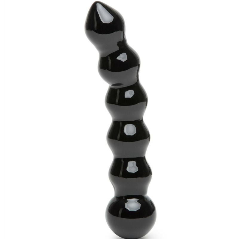 El It's Divine es un dildo de cristal negro ribeado de la colección Cincuenta Sombras liberadas
