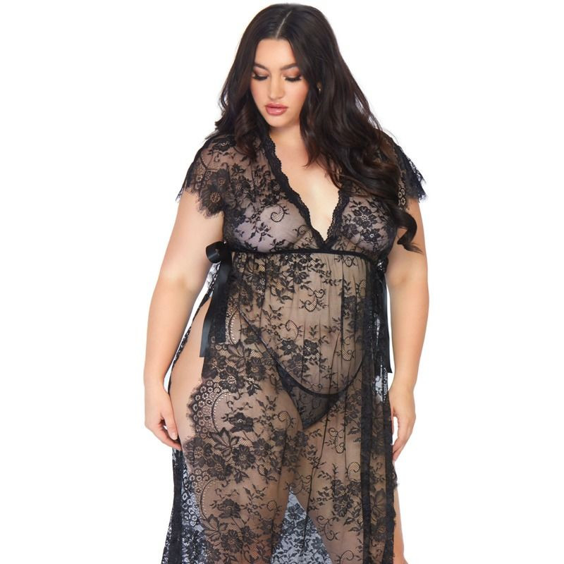 Conjunto incluye un largo peignoir de encajes con pestañas, cinta de satén y tanga a juego fabricado por la prestigiosa marca de lencería Leg Avenue. Con Leg Avenue reforzarás tu feminidad y obtendrás ese toque justo de seducción, sensualidad y elegancia.