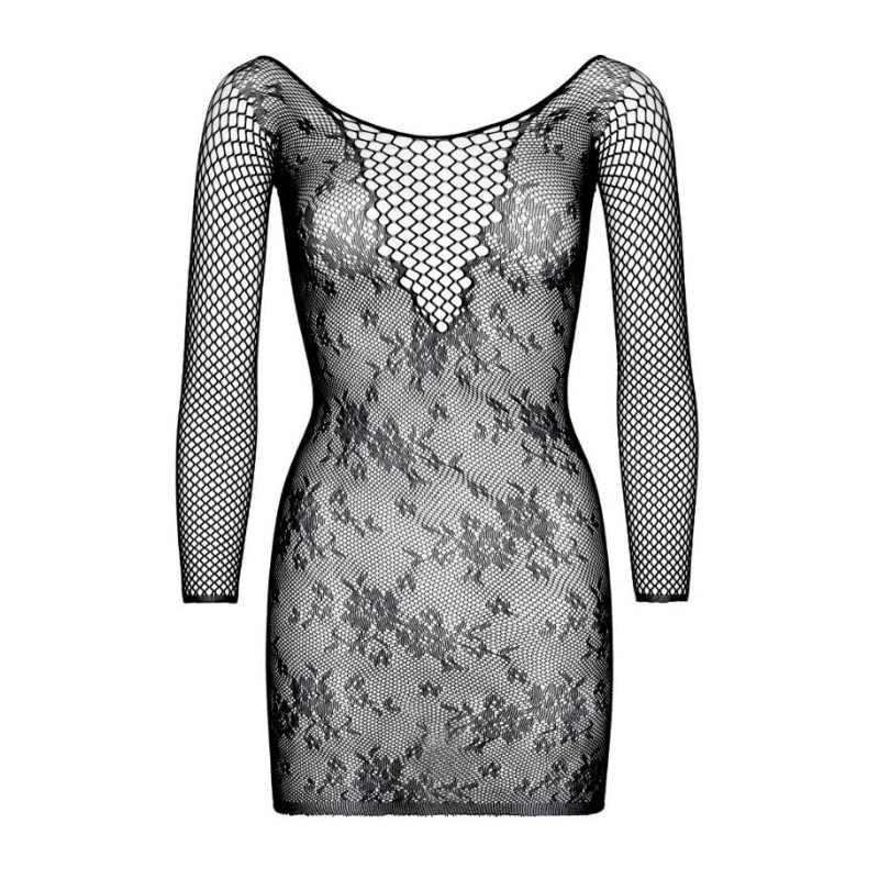Mini vestido de encaje floral con Mangas Largas y profundo escote V en red fabricado por la prestigiosa marca de lencería fina: Leg Avenue