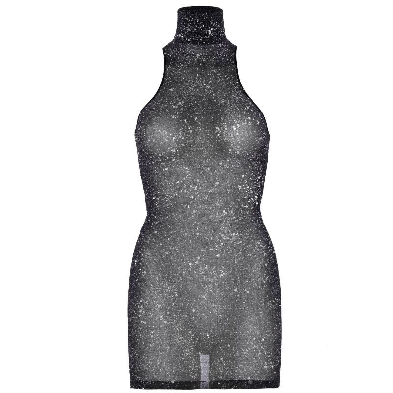 Mini vestido con cuello alto en lurex brillante fabricado por la prestigiosa marca de lencería Leg Avenue.