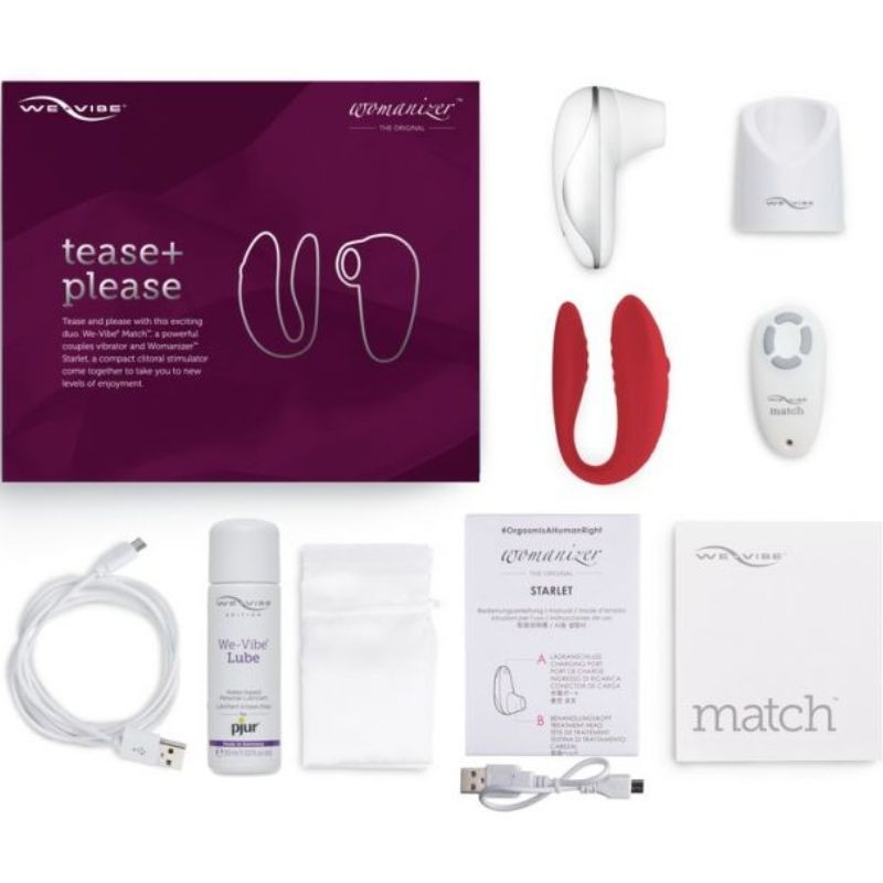El Tease+Please asegura doble satisfacción, esta edición limitada se compone del we Vibe Match el vibrador número uno y del Womanizer Starlet el pequeño succionador